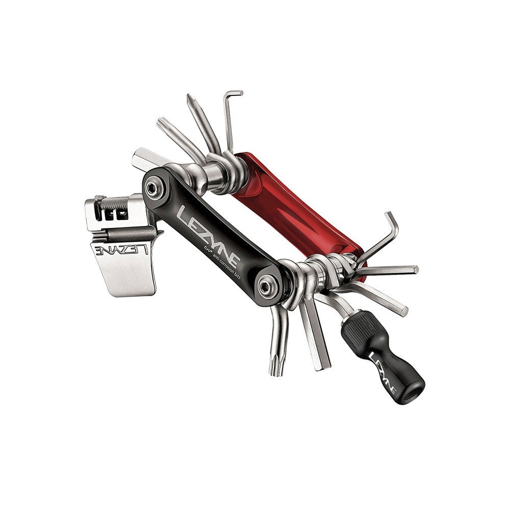 | Description | The Lezyne Rap CO2 tool is a simple ingenious tool with an integrated CO2 dispenser. The RAP CO2 line of multi tools feature a simple yet ingenious design that integrates a CO2 dispenser. The CO2 head quickly slides on or off the 5 mm bit allowing for easy access and an internal sleeve unthreads from the chuck revealing the engagement port for a threaded CO2 cartridge. The head threads onto either a Presta or Schraeder valve and is made up of a lightweight and durable aluminium construction. Available in a 15- or 21-tool build the RAP CO2 features our exclusive CRV+ corrosion resistant bits and ergonomic aluminium side plates. WEIGHT: 149g DIMENSIONS: 51W x 67L x 27H (mm) TOOL BITS: Hex 2, 3, 4, 5, 6, 8mm Chain Breaker: (9/10/11 speed) Star Shaped T25, T30 Spoke Wrenches: Mavic Mtv, 3.22, 3.45 Phillips-Head Integrated CO2 Dispenser |