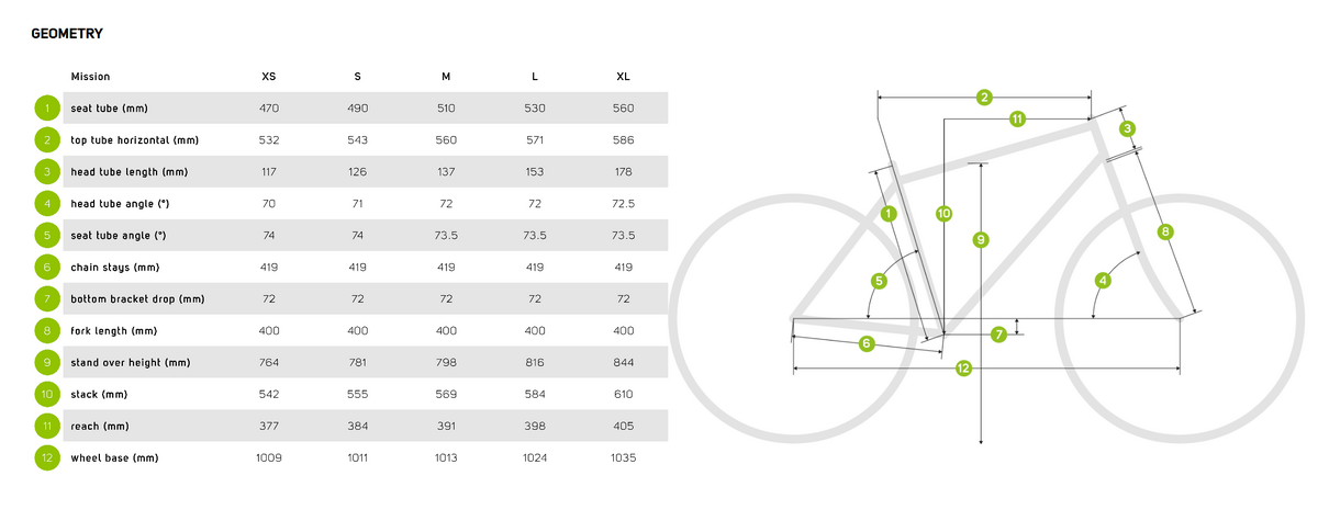 | Forks | Mission CF4 II; Tapered; material: carbon; 700x45C max. tyre size |