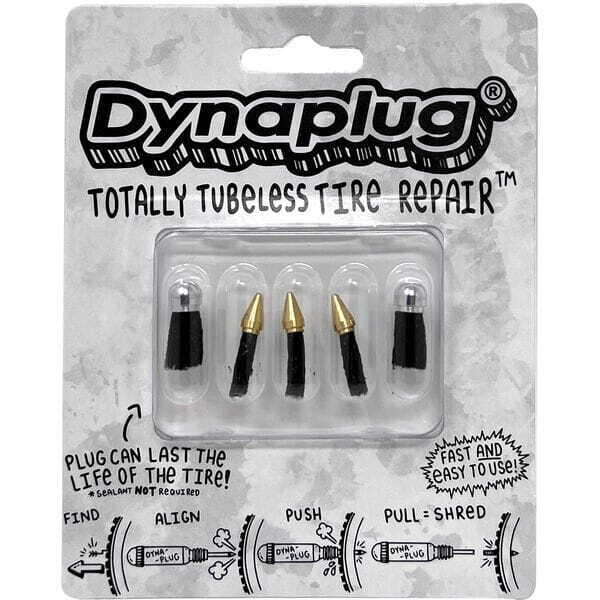 Ideal for Racer, Racer Pro or MegaPill owners, the Dynaplug Plug Pack includes 3 standard Soft Nose plugs and 2 of our XL MegaPlugs for more serious damage Megaplug repair plugs are ideal for larger punctures, approximately 3 times as thick as a standard plug with a custom 6061 aluminum tip- Dynaplug is the fastest, easiest and all-round best way to repair a tubeless tyre mid-ride. When needed, just remove whatever caused the puncture, firmly push the novel insertion tube straight into the hole and extract the tool depositing the repair plug in the tyre, done!