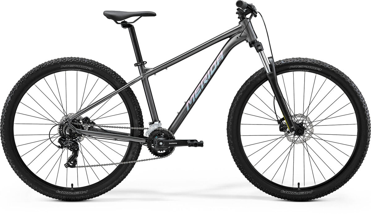 | Style | 29er hardtail with sophisticated TFS aluminium trail ready geometry frame Shimano 2 x 7 drivetrain SR Suntour 100mm fork mechanical disc brakes Shimano hubs cassette and chainset.Merida's expertise for over 50 years has been building bombproof aluminium hardtails. The latest generation follows modern mountain bike trends - a longer reach combined with a shorter stem. The geometry features a steeper seat angle and slacker head angle for greater offroad capability but without compromising everyday usability. The sophisticated TFS frames feature: full internal cable routing for a clean neat set up tapered headtube offering future upgrade potential inboard disc brake mounts protect the brake and maximise stopping power dropper post ready New XXS Big Seven size extends the wide range of sizes; Big Nine for taller riders Big Seven for shorter riders. Riders in the middle can take riding style into account - for speed and efficiency choose a Big Nine for agility choose a Big Seven. |