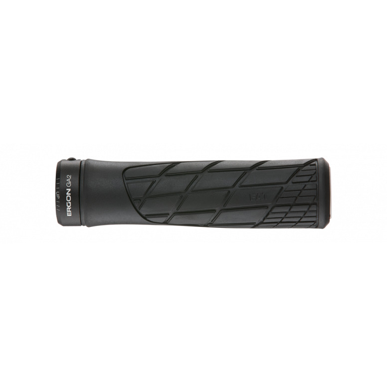 | Description | The GA2 Fat is a thicker, chunkier version ofthe GA2. Ideal for riders with larger hands or high demands for damping. The GA2 Fat is an All-Mountain grip with a superb tactile feel thanks to the super soft, UV-stable rubber compound, exclusively developed and manufactured in Germany for Ergon. This allows for greater control on demanding trails. The ergonomic shape fits the contours of the hand and significantly reduced arm pump on long trails. The inner construction varies in thickness allowing greater damping.
