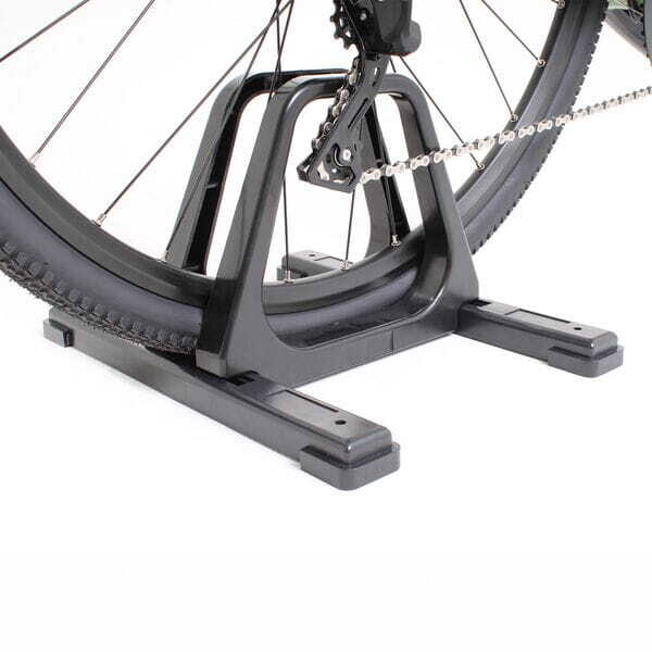 - A compact, convenient, and lightweight rack that holds the rear wheel of your bike