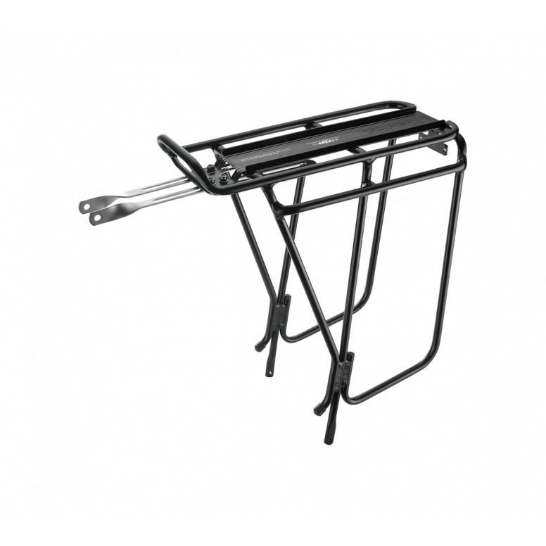 | Description | Super strong yet light tubular aluminium rack with triple stays. Integral Quick Track accepts all Topeak TrunkBags & MTX rear baskets. Available to fit bikes with and without disc brakes.